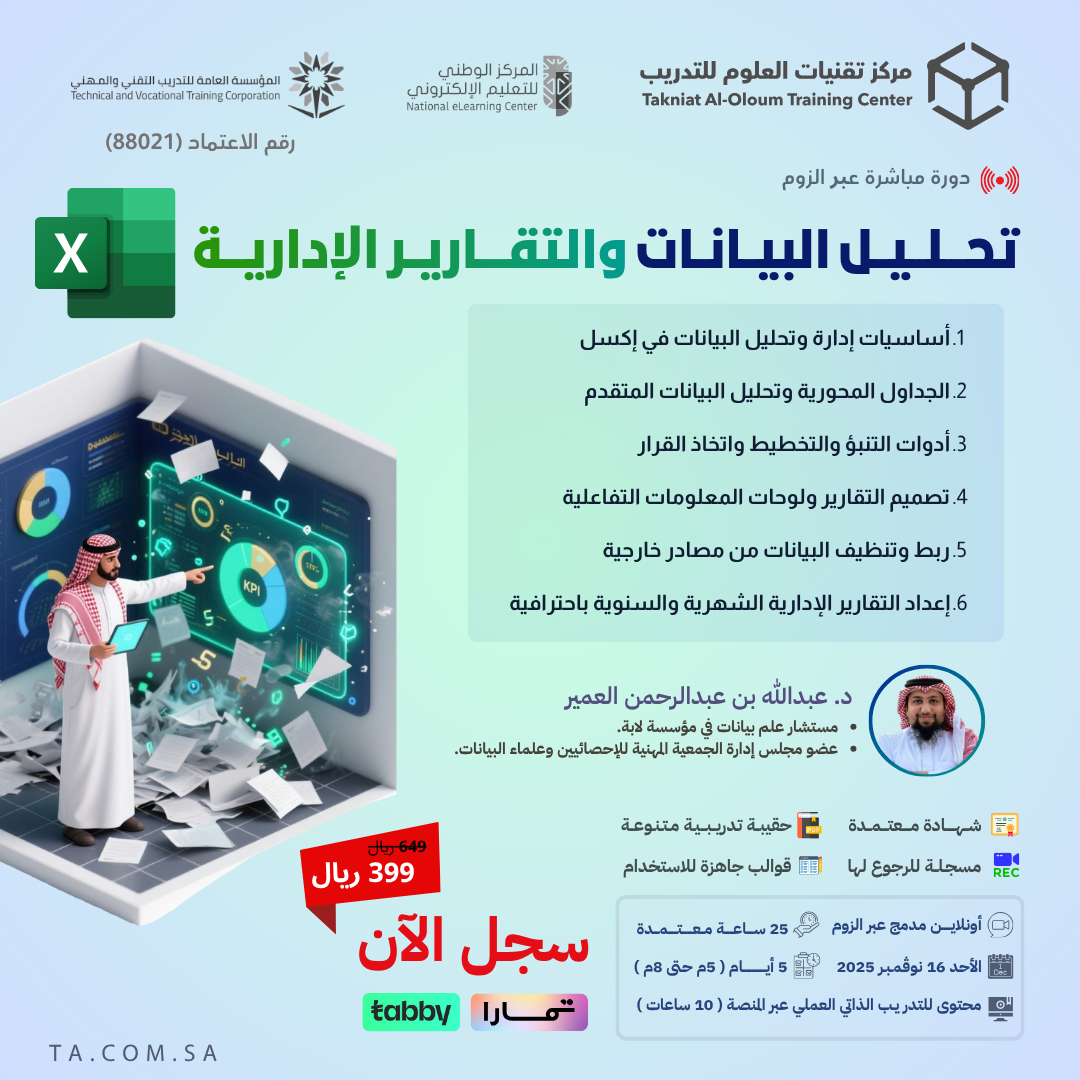 - تطوير مستواك المهني لتصبح مرجعًا في التقارير والتحليل داخل مؤسستك.مناسبة لـ: